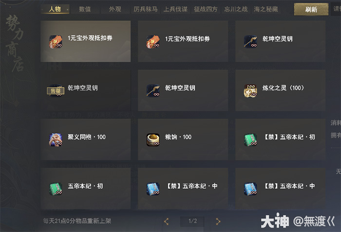 (势力界面右下角-势力商店-厉兵秣马,可以看到所有奖励)