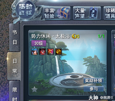 一、每日必做任务 之 势力休闲·太极浴(泡澡)