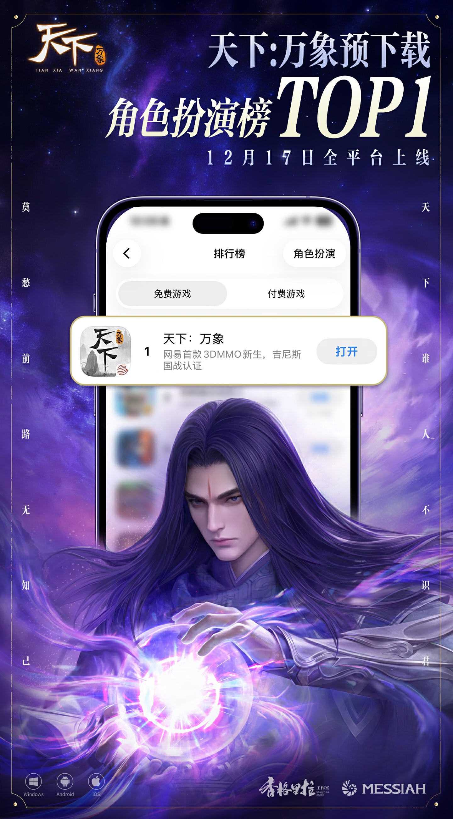 《天下:万象》全平台公测现已开启!在昨日开放预下载以后,《天下:万象》便已登顶角色扮演榜榜首,感谢少侠们的支持!十七载大荒路,幸得君始终同行。